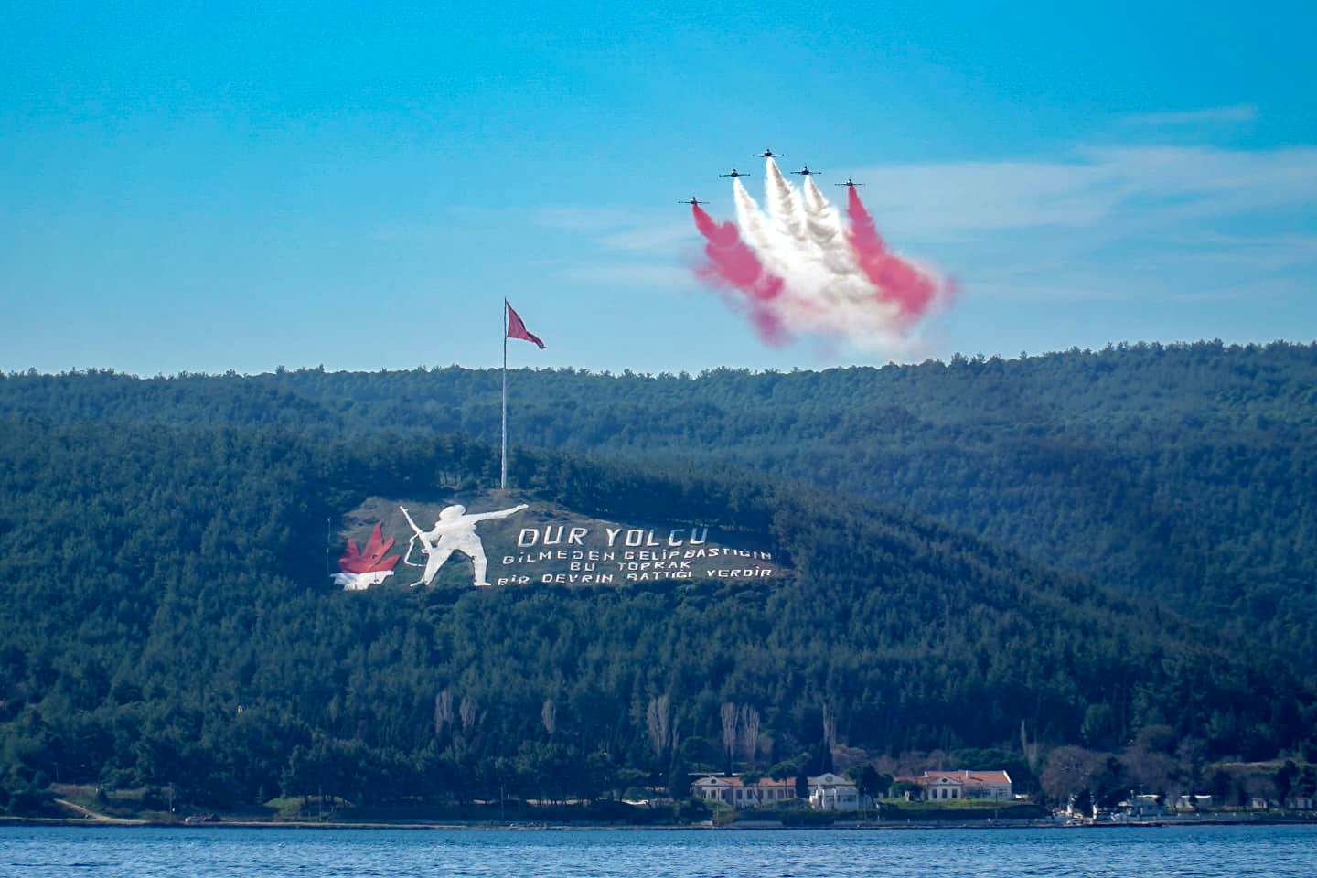 Tarihi Çanakkale Boğazı ve çevresinde düzenlenen gösteride, Türk Yıldızları’nın disiplinli uçuş performansları izleyicilere unutulmaz anlar yaşattı. Organizasyon, milli birlik ve beraberliğin pekiştirilmesi amacıyla düzenlenirken, şehitlerimize duyulan saygı ve minnetin ifadesi olarak gerçekleştirilen saygı uçuşu büyük coşkuyla karşılandı.
