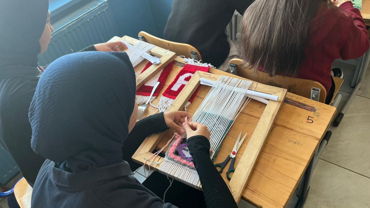 Görsel Sanatlar Öğretmeni Mehmet Doğan rehberliğinde bir araya gelen öğrenciler, yüzyıllardır Anadolu’nun kültürel hafızasında önemli bir yere sahip olan dokuma geleneğini ilmek ilmek yaşatıyor.
