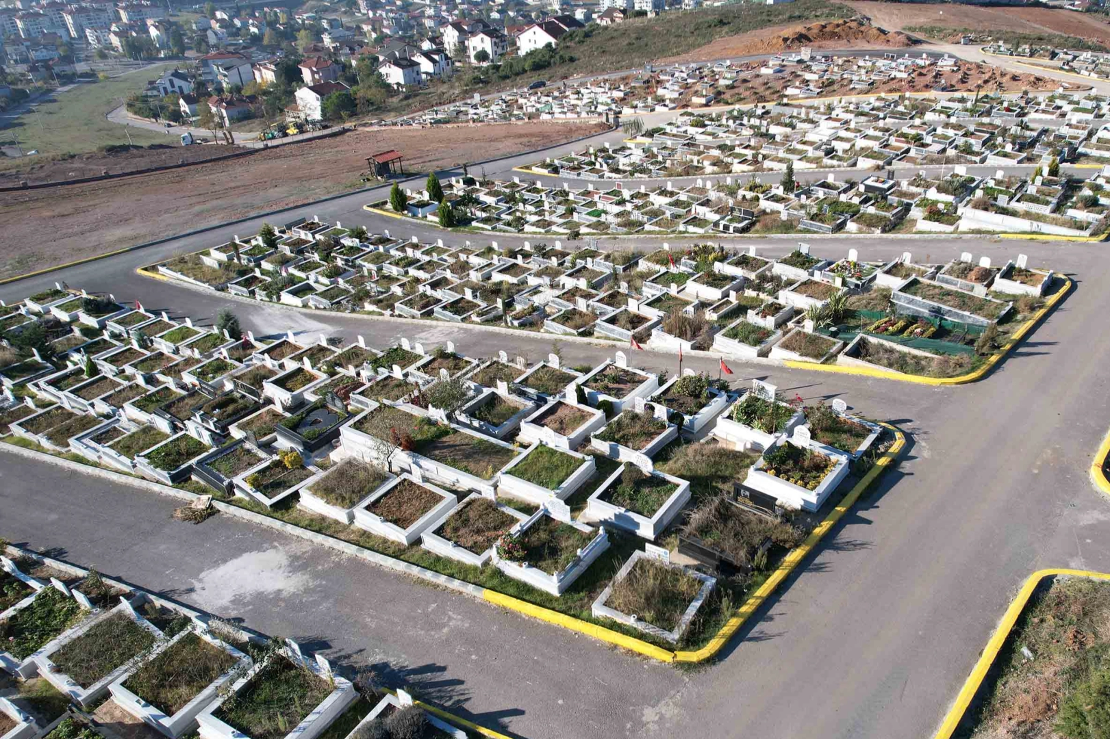 Kocaeli Belediyesi Derince 17 Ağustos Mezarlığı’nda yeni açılan kısımlarda asfaltlama yaptı