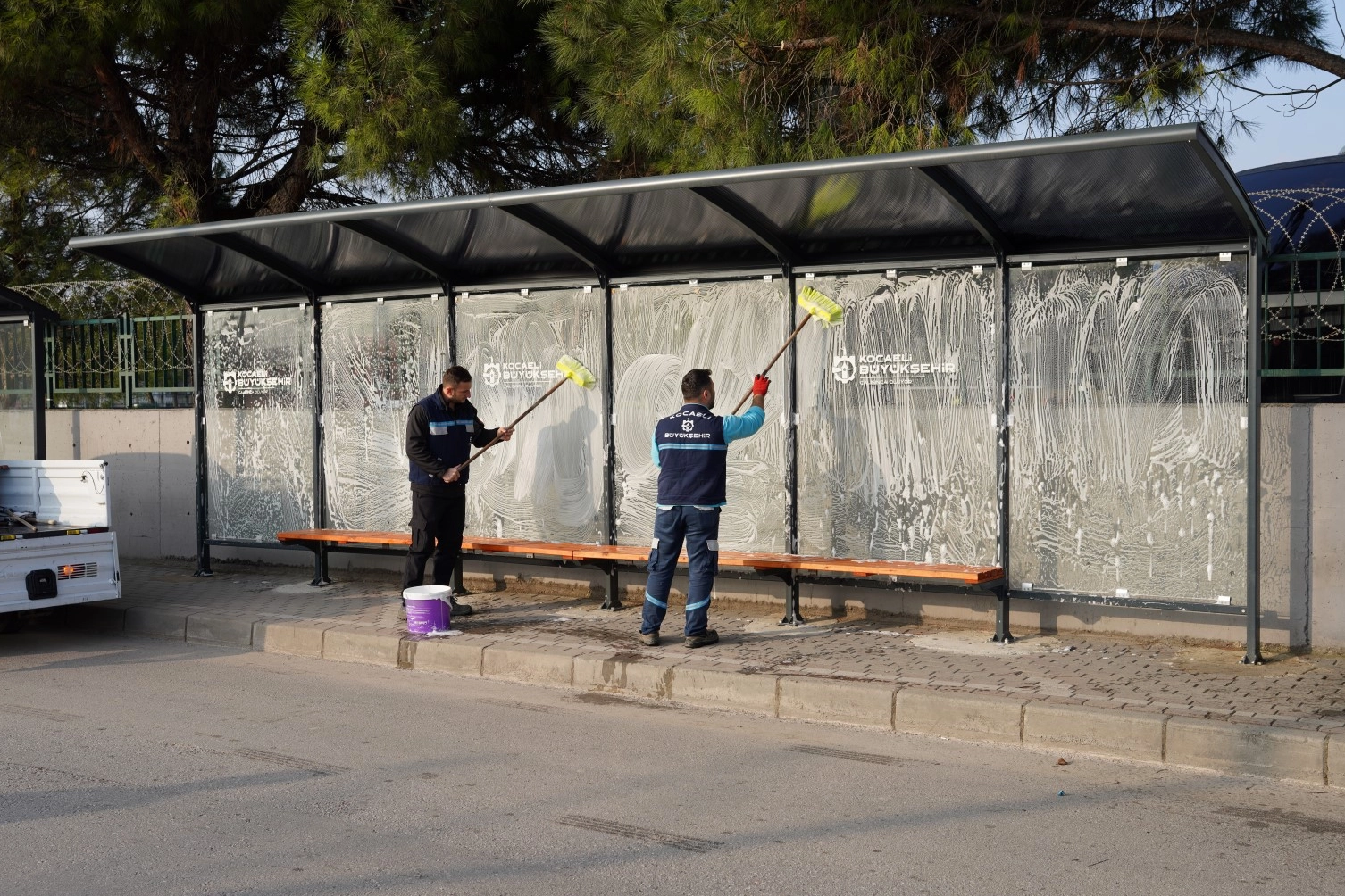 Kocaeli genelinde farklı özelliklere sahip toplam 4 bin 142 adet kapalı yolcu duraklarının temizlikleri ve bakımları ekipler tarafından periyodik olarak yapılıyor. Bu kapsamda Toplu Taşıma Müdürlüğü’ne ait 2 adet durak yıkama aracı ile birlikte günde yaklaşık olarak 50 adet kapalı yolcu durağı yıkanıyor.
