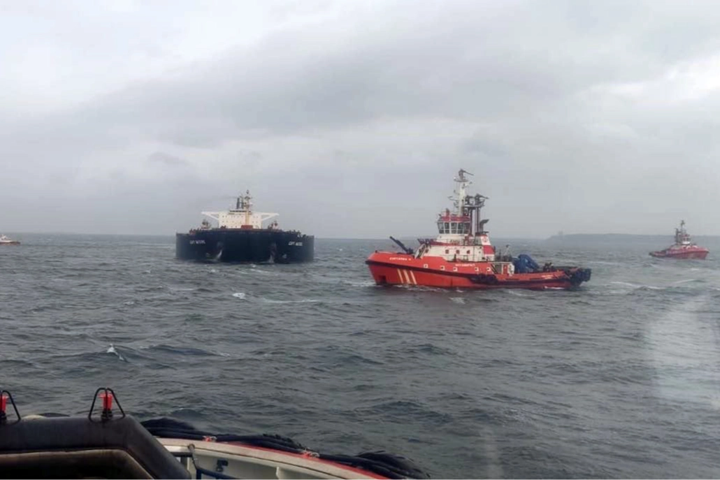 289 metre boyundaki kuru yük gemisi, ekiplerin çalışmasıyla Karanlık Liman’a demirletildi.