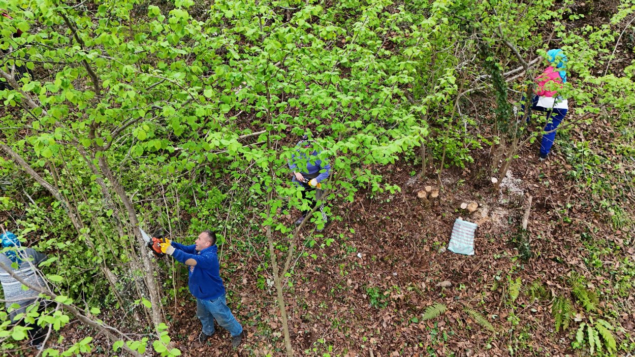 1000 dönüm fındık bahçesinde çalışma yapılıyor